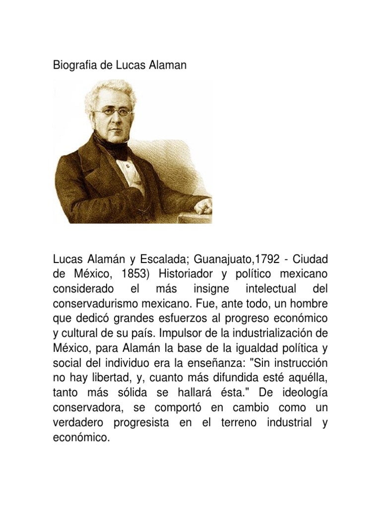 El pensamiento de lucas alamán: Lucas alaman nació en guanajuato el 18 de octubre de 1792. Biografía de lucas alamán la muerte lo sorprendió cuando ostentaba, por tercera vez, la cartera de relaciones exteriores, período en el que, además, había conseguido la creación del ministerio de fomento, colonización, industria y comercio. Fue don lucas un hombre íntegro que nunca transigió con sus ideales. Louis, ciudad en la que sus hermanos trabajaban como barberos.
